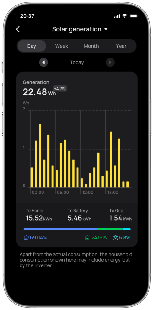 Mit der benutzerfreundlichen EcoFlow App und dem Webportal behalten Sie den Überblick über Ihren Stromverbrauch, Ihre Solareinspeisung und Ihren Batteriespeicher in Echtzeit. Priorisieren Sie die Solarenergienutzung und laden Sie Ihre Batterie automatisch mit überschüssig produzierter Energie für den nächtlichen Gebra