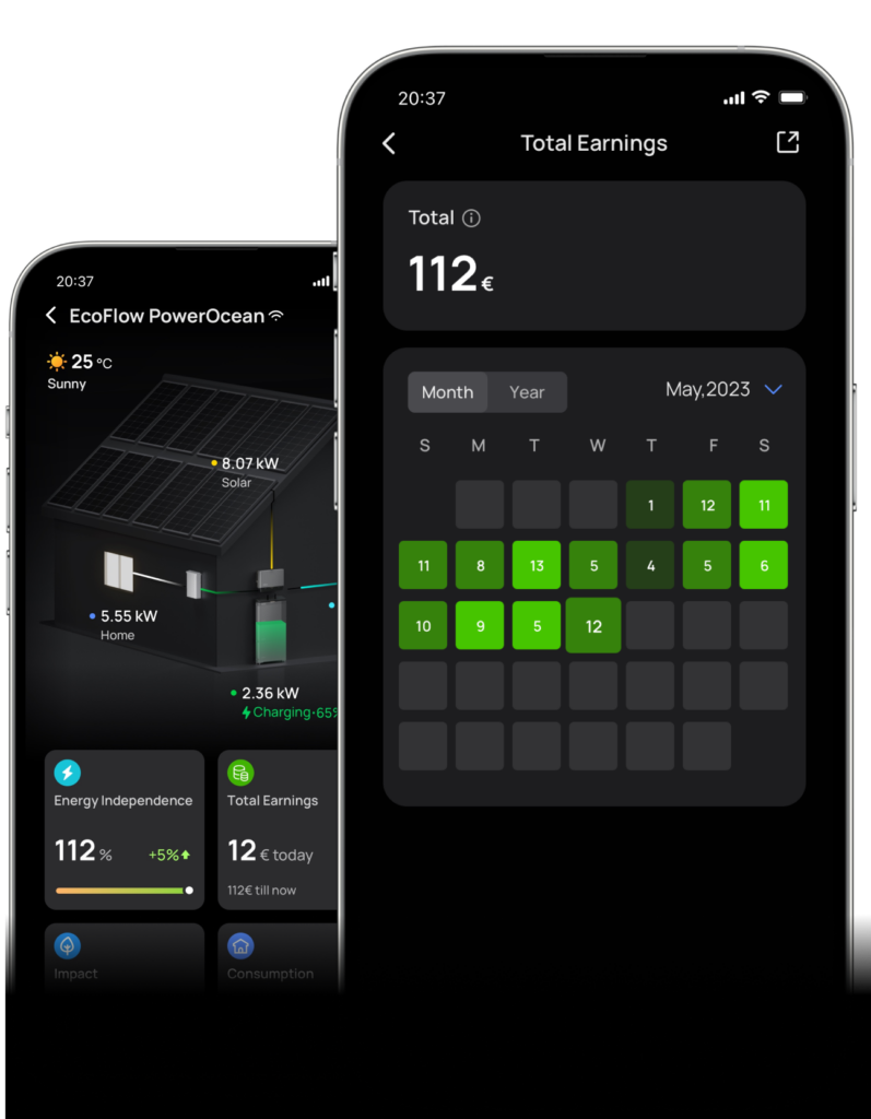 Lassen Sie EcoFlow App Ihr persönlicher Energie-Hausmeister sein, der Ihre aktuellen und vergangenen Einsparungen verfolgt und Ihnen hilft, energieautark zu werden.