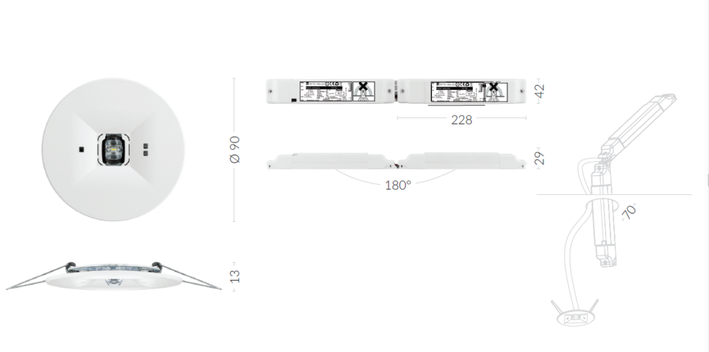 | Normen | PN-EN 60598-1, PN-EN 60598-2-22, PN-EN 61347-1, PN-EN 61347-2-7, PN-EN 61347-2-13, PN-EN 55015, PN-EN 61000-3-2, PN-EN 62031, PN-EN 62471, PN-EN 1838 |