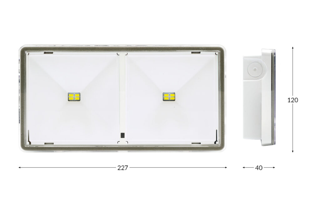 - Notleuchte perfekt für Freiflächen und industrielle Fluchtwege, bei denen eine hohe Schutzart IP65 erforderlich ist