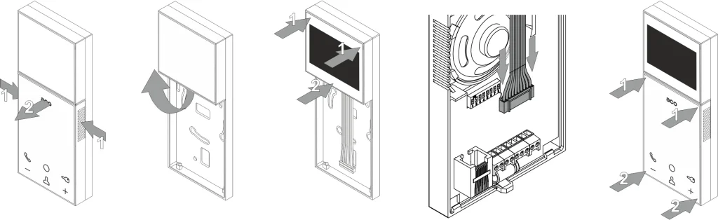 3,5-Zoll-Farb-LCD-Anzeigemodul – ermöglicht den einfachen Wechsel der Audioversion (UP800V) zur Videoversion (MP800). Kompatibel mit digitalen Bedienfeldern und Bedienfeldern aus den folgenden Gruppen: CDNP, Inspiro und Familio P / PV